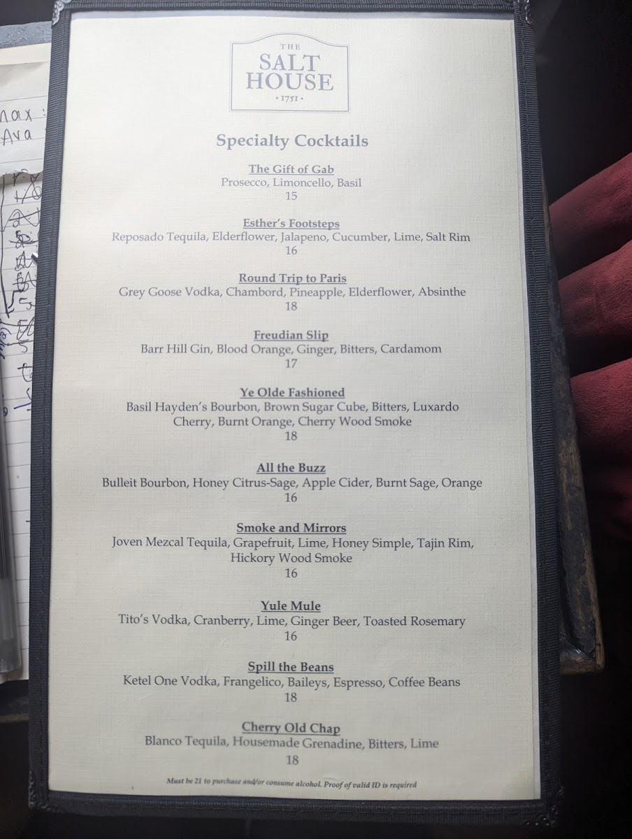 Pair your meal with an impressive selection of wines, including options by the glass and a curated bottle list featuring gems from France and Italy. Whether you relax on the inviting patio or inside the quaint dining room, The Salt House promises a memorable culinary experience in a setting that encourages you to linger and savor each moment.